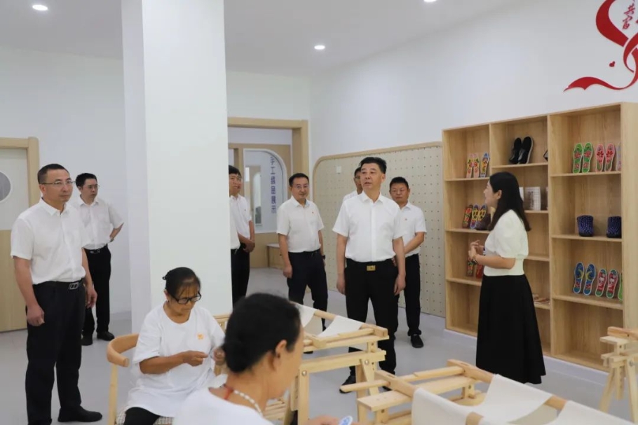 督导组一行先就银江镇恒德社区居民融合治理、妇女居家灵活就业、托幼一体化综合服务等情况进行了调研。
